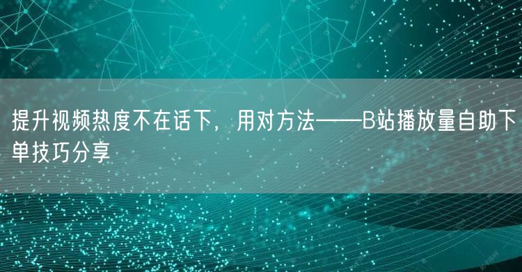 提升视频热度不在话下,用对方法——B站播放量自助下单技巧分享