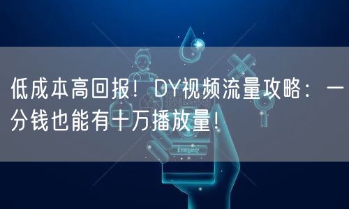 低成本高回报!DY视频流量攻略:一分钱也能有十万播放量!