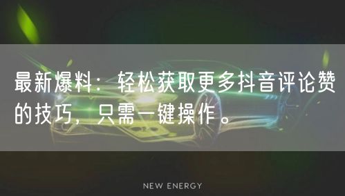 最新爆料:轻松获取更多抖音评论赞的技巧,只需一键操作。