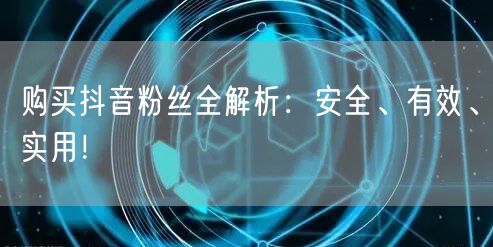 购买抖音粉丝是提升人气的一种有效方法,但关键在于如何安全、有效地进行。本文为你提供了全面的购买抖音粉丝解析,包括选择安全可靠的购买方式、有效增加粉丝的方法和实用操作技巧。希望能够帮助你在抖音平台上快速提升影响力!