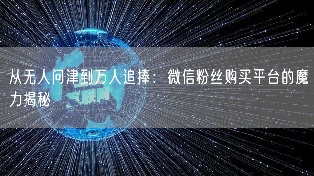 随着互联网的发展,微信已成为人们生活中不可或缺的一部分。企业在微信上的营销战略显得尤为重要。然而,从零开始积累微信粉丝是一个漫长而艰辛的过程。这时,微信粉丝购买平台应运而生,它究竟有何魔力,能助力企业实现从无人问津到万人追捧的跨越呢?本文将深入探讨这一问题。