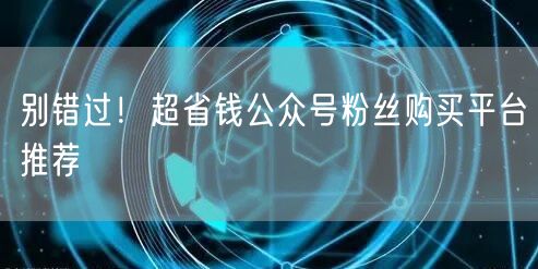 总之,如果你是一个热爱网购的人,那么超省钱公众号粉丝购买平台绝对是你不可错过的购物圣地。在这里,你不仅能享受到省钱的购物体验,还能找到众多优质商品和丰富的优惠活动。赶快关注超省钱公众号,加入粉丝购买平台,一起开启你的省钱购物之旅吧!
