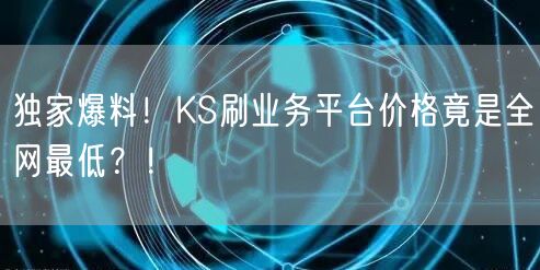 独家爆料!KS刷业务平台价格竟是全网最低?!