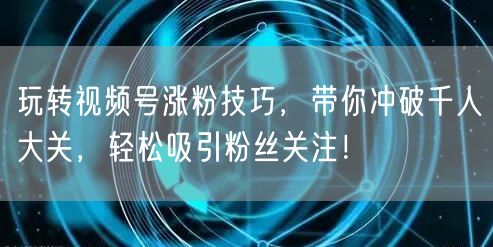 玩转视频号涨粉技巧,带你冲破千人大关,轻松吸引粉丝关注!