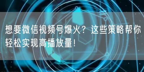 想要微信视频号爆火?这些策略帮你轻松实现高播放量!