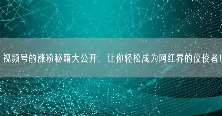 视频号的涨粉秘籍大公开,让你轻松成为网红界的佼佼者!