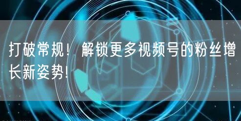打破常规!解锁更多视频号的粉丝增长新姿势!