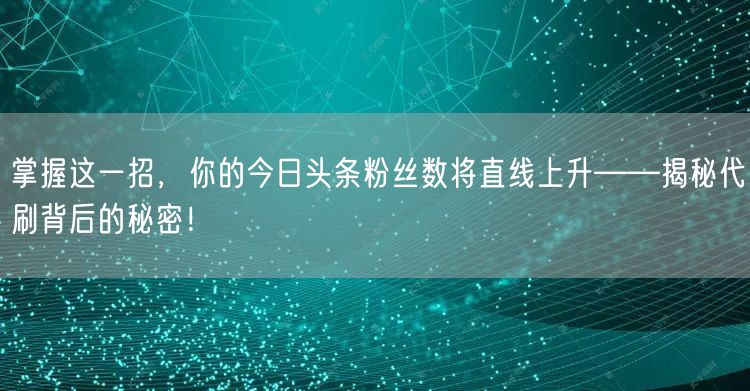 今日头条是一个拥有亿万用户的新闻资讯平台,也是众多自媒体人争相入驻的热门平台。在这个平台上,粉丝数往往决定了你的影响力。那么,如何快速有效地提升粉丝数呢?揭秘代刷背后的秘密,掌握这一招,你的粉丝数将直线上升!