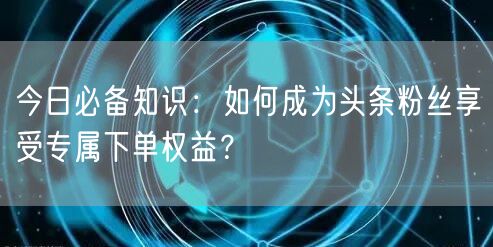 今日必备知识:如何成为头条粉丝享受专属下单权益?