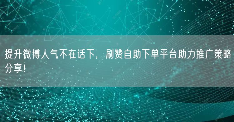 本文介绍了如何利用刷赞自助下单平台提升微博人气,分享了推广策略。通过实施这些策略,你将能够轻松提升微博人气,扩大影响力。随着微博营销的不断发展,我们期待更多的创新方法和技巧的出现。