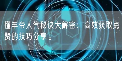 懂车帝人气秘诀大解密:高效获取点赞的技巧分享。