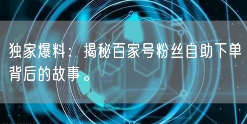 独家爆料:揭秘百家号粉丝自助下单背后的故事。