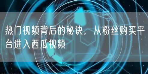 热门视频背后的秘诀,从粉丝购买平台进入西瓜视频