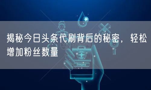在数字化时代,社交媒体的影响力日益增强,拥有庞大的粉丝群体成为了许多人的追求。在这样的背景下,今日头条代刷服务应运而生,成为了许多人追求快速增加粉丝的手段。那么,今日头条代刷背后究竟隐藏着怎样的秘密?如何轻松增加粉丝数量呢?接下来,我们将一起探究这个问题。