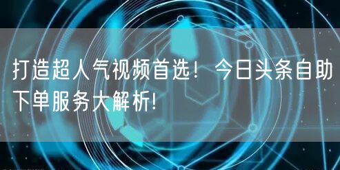 打造超人气视频首选!今日头条自助下单服务大解析!